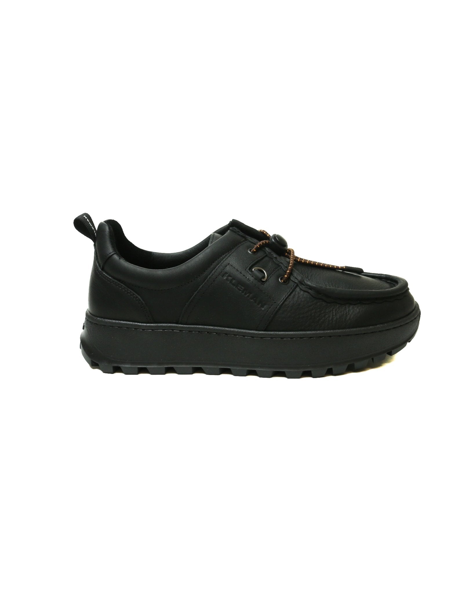Black grained leather sneakers with lug sole